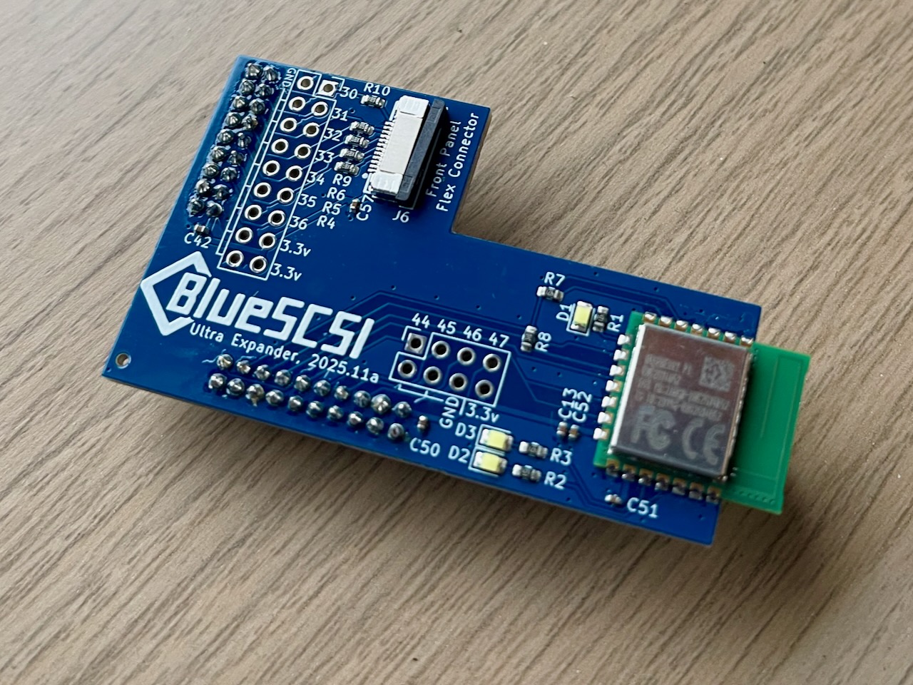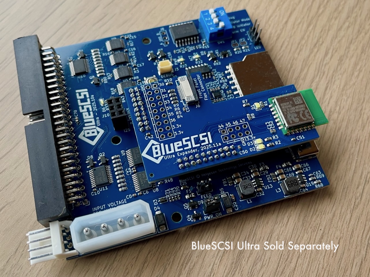 Add WiFi connectivity and the SPI flex cable connector to your BlueSCSI Ultra – Narrow 50 Pin.